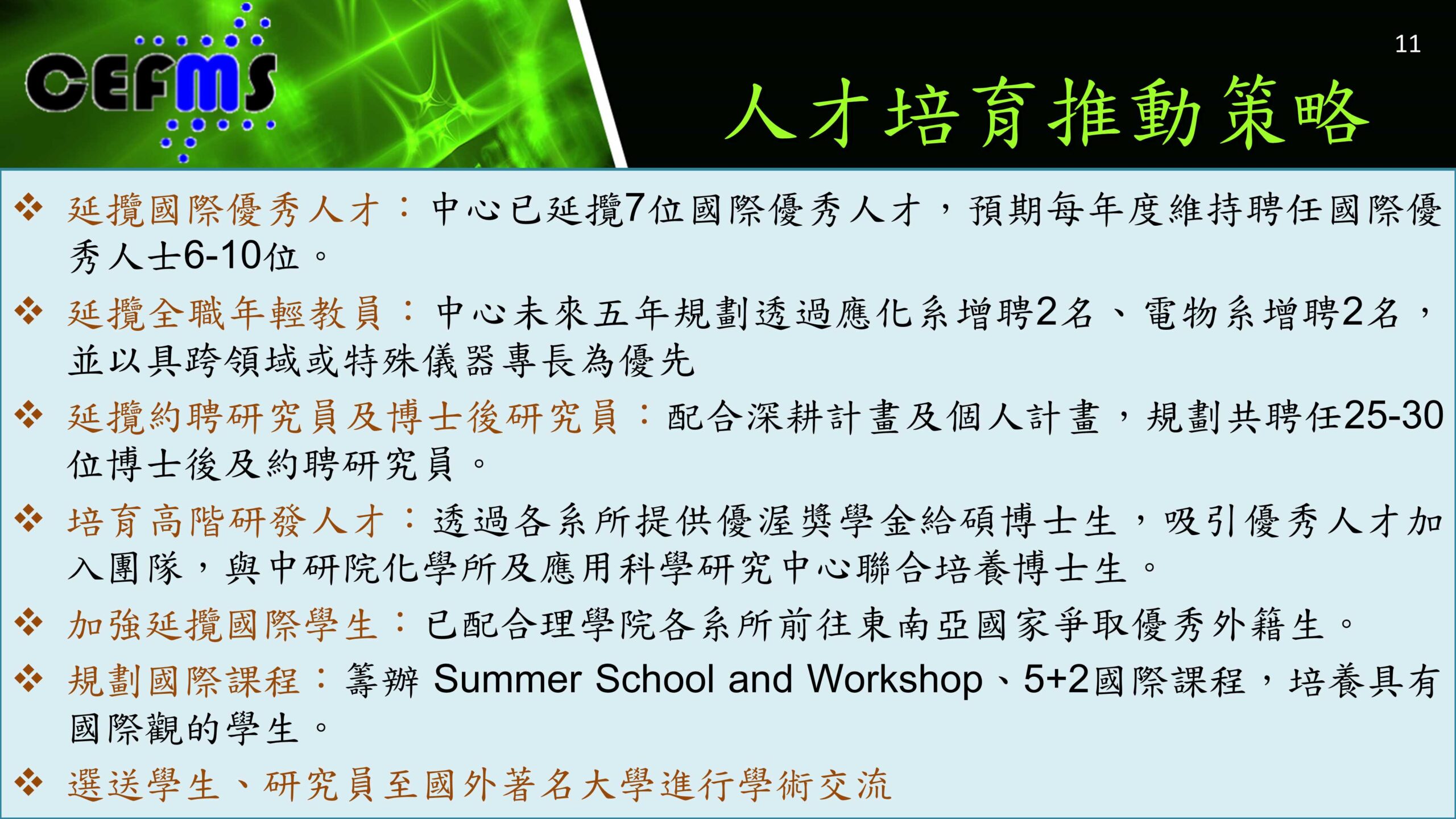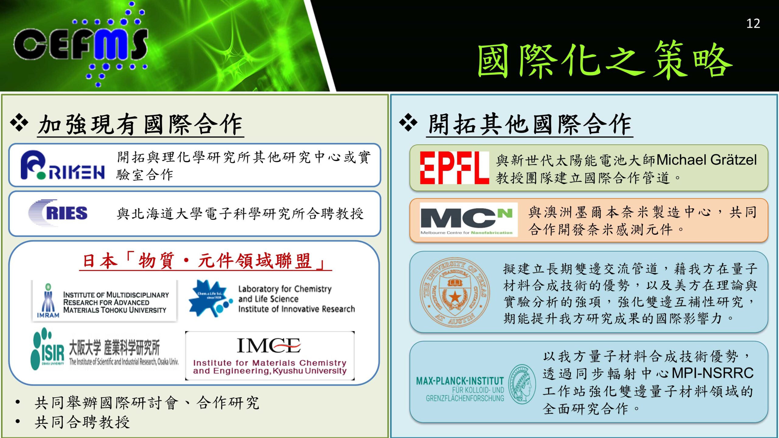 「新世代功能性物質研究中心」係由95年起教育部頂尖大學計畫中所設立之「前瞻跨領域基礎科學中心」進一步整合發展而成。從107年的高等教育深耕計畫開始執行以來,獲得教育部「特色領域研究中心計畫」及科技部「特色領域研究中心計畫」之補助,執行四年多以來,成果得到教育部及科技部的肯定,獲核定之經費逐年增加。